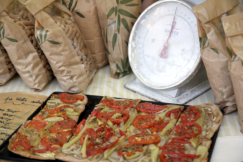 ...verdures fresques i de temporada, pa i pasta de blats antics, rosquilles, coca dolça, plantes medicinals, herbes per infusions, ungüents, olis essencials i tintures, hidrolats, balsam labial, espècies, xocolata negre, amb llet, sense sucre i amb stevia, blanca, trufes, bombons, la paella o fideuà i més.